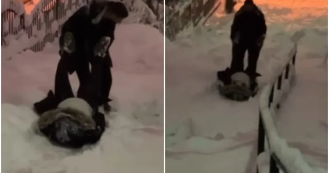 Na snimku se vidi kako trudnica leži na leđima, dok je muškarac vuče za noge i poput sanki spušta niz brdo. Snimak je izazvao veliku pažnju na društvenim mrežama i pokupio brojne pozitivne komentare.