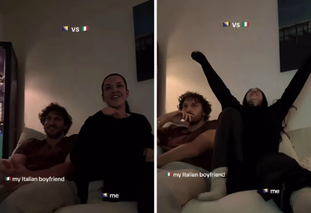 Bh. manekenka Enisa Bukvić objavila je video sa svojim partnerom Italijanom, a njihova reakcija tokom i nakon utakmice brzo je postala viralna, kako prenosi Index.