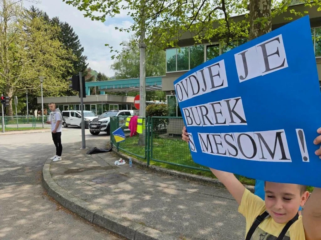 Kako piše Hercegovina.info, jedan od najsimpatičnijih trenutaka zabilježen je u Jablanici, gdje je pažnju svih prisutnih privukao dječak s transparentom na kojem je pisalo: “Ovdje je burek s mesom!”
