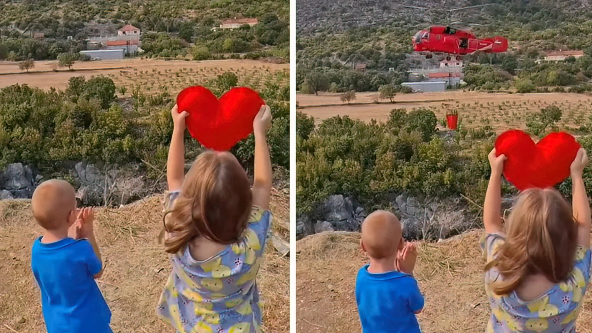 Dok su snimci prethodnih dana uglavnom prikazivali dim, pepeo i razaranja, ovaj kadar donio je drugačiju sliku – sliku nade, solidarnosti i ljudskosti. Osmijeh dvoje mališana, u trenutku kada se njihovo okruženje bori za opstanak, postao je podsjetnik da i u najtežim trenucima postoji svjetlo koje vatra ne može ugasiti.